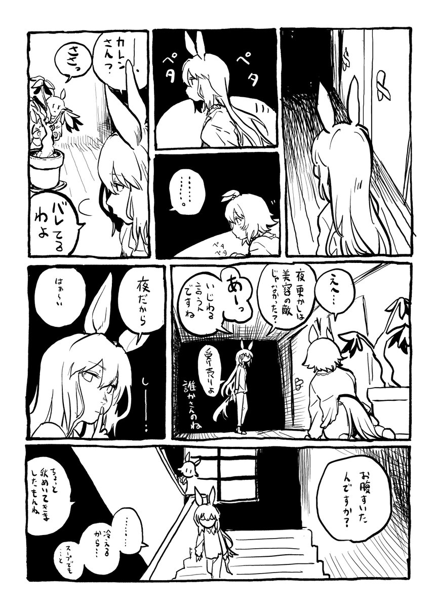 エアコンをガンガンに効かせてふわふわの布団で寝るアヤベさんに対してカレンチャンがキレてそう
