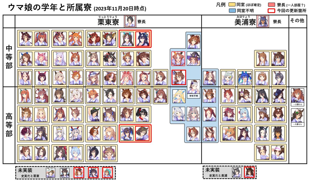 ウマ娘の学年と所属寮、同室の情報を更新いたしました。創作活動などの参考になれば幸いです。