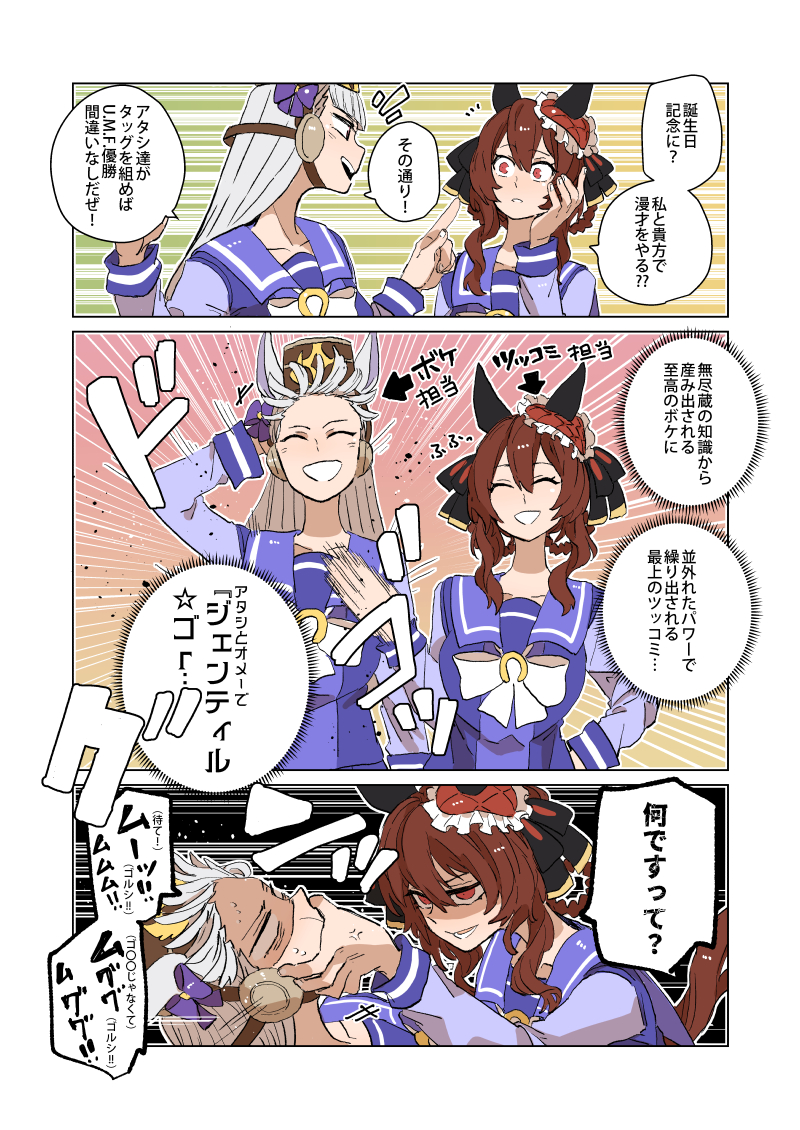 ゴルシとドンナのお互い雑に扱っても大丈夫な雰囲気すこ。お姉ちゃんの粘度ある感じとはまた別の栄養素がある。