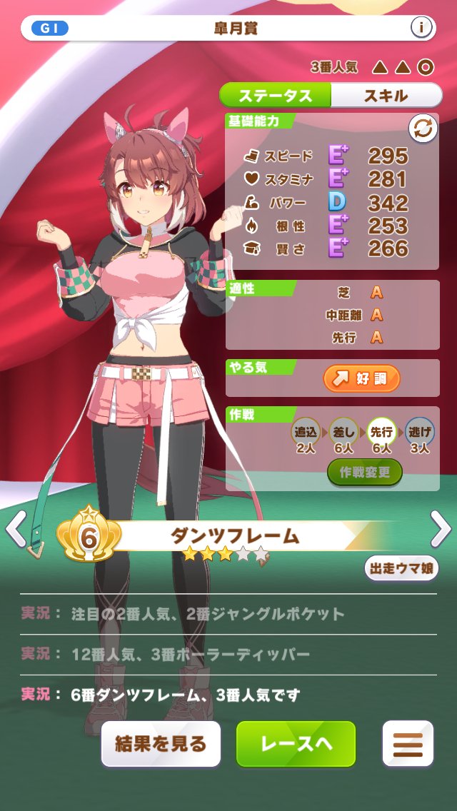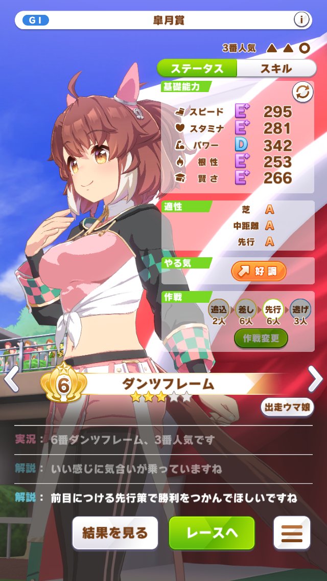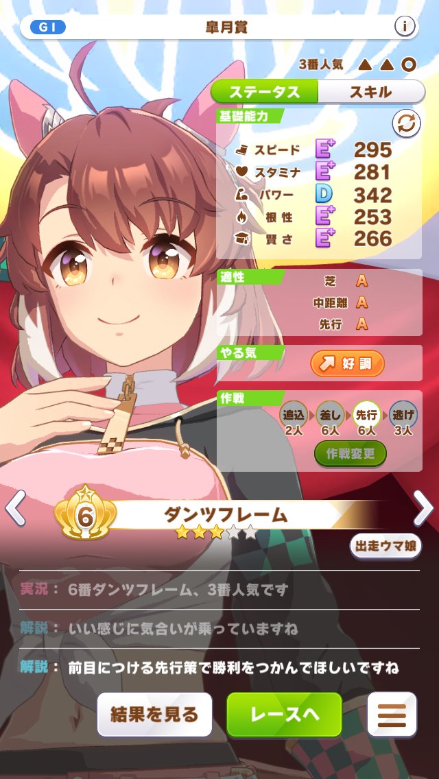 皐月賞は根性以外400~450。スキルはさっきの金2が目立ったところなので、勝てなくはない。URAはキツいけど。