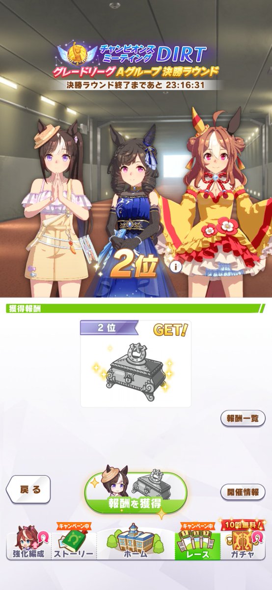 B決勝だけどうちの会長は一着取ってくれたよ!つまり推しの魔改造の可能性も一応ある