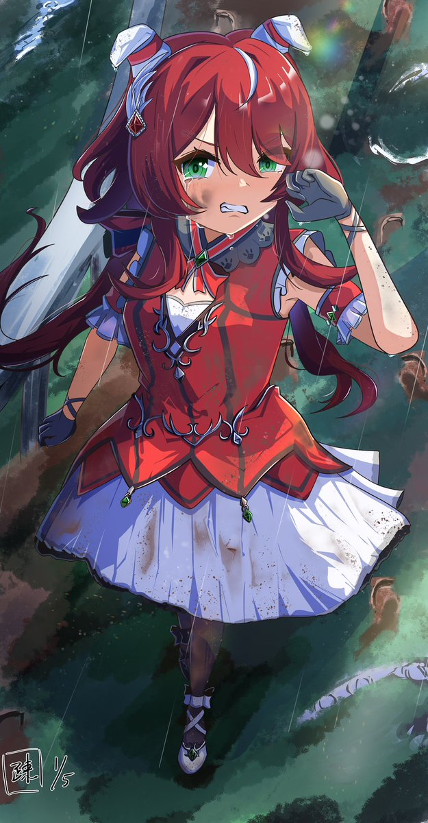 目から果汁..そういえばウマ娘でも珍しい赤髪は実馬が苦手だったリンゴからきてるのかな?