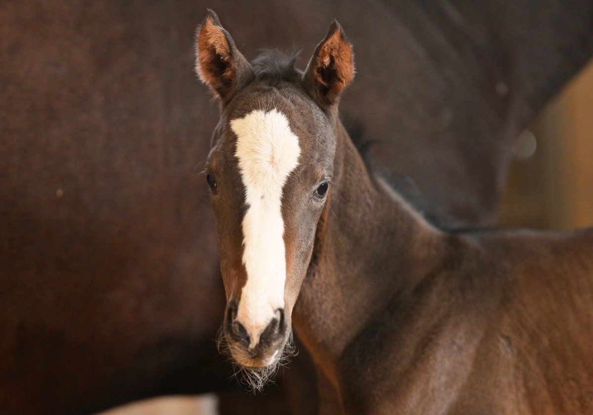 キャンプロックが新種牡馬イクイノックスのノーザンファーム初産駒を出産しました。お顔の模様はお父さん譲りでしょうか?愛くるしい表情がたまりませんね。