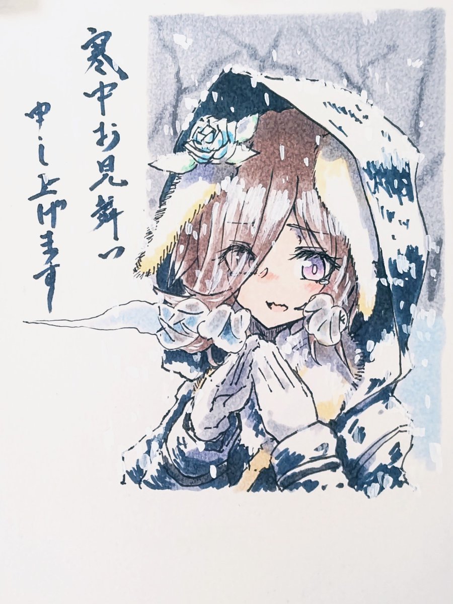 寒中見舞いを出すべく、ダッシュで葉書に描いた絵です。さむそう。