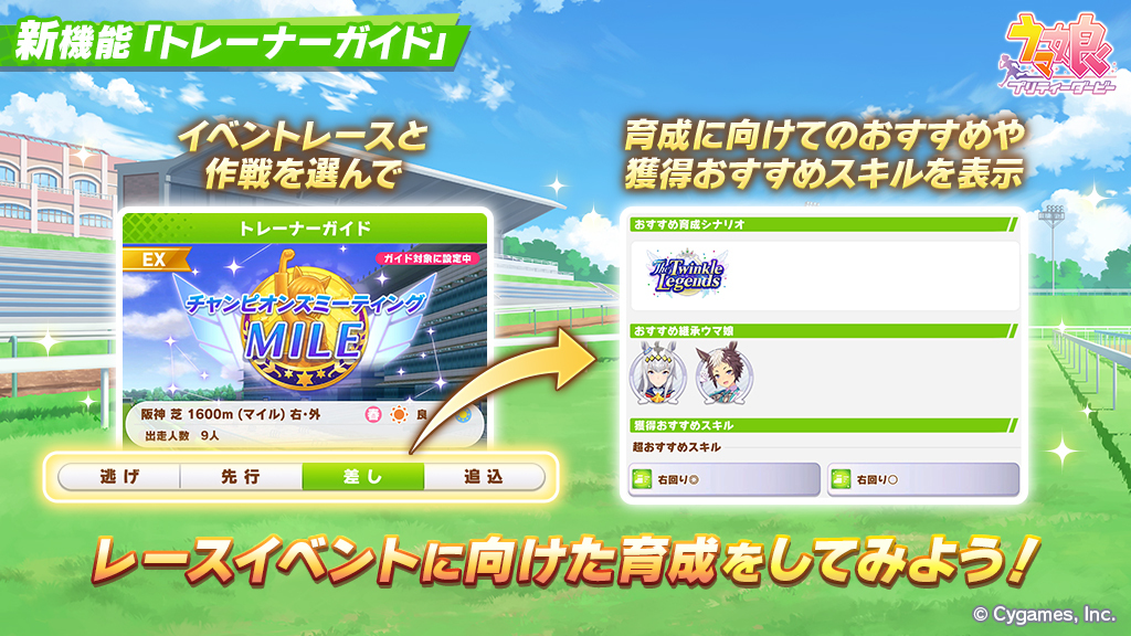 「トレーナーガイド」はレースイベントに向けた育成を行うための補助機能です。