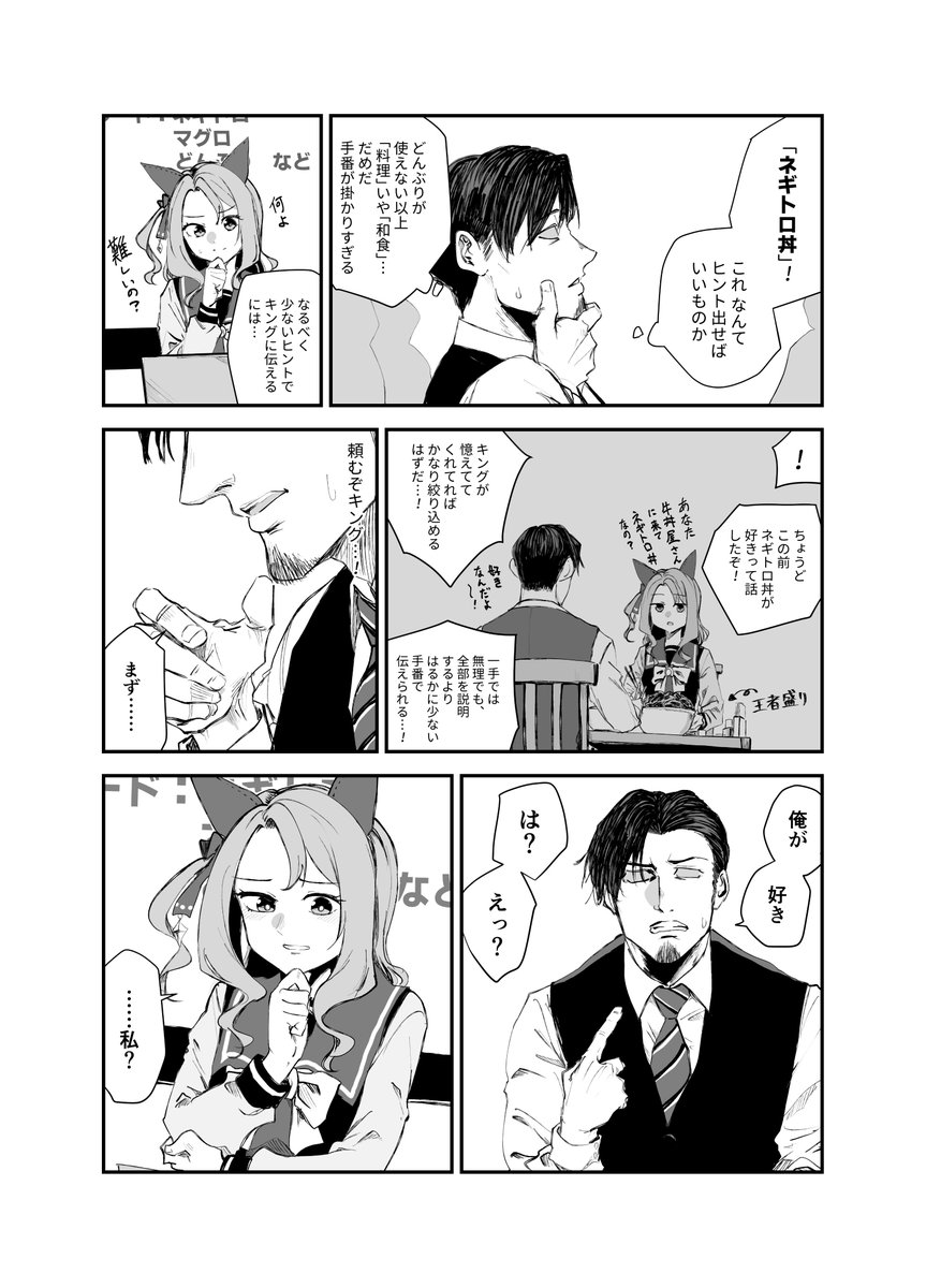 キングが『俺が好き(なもの)』と解釈したか、『俺(のこと)が好き』と解釈したかでまた話が変わってきますな