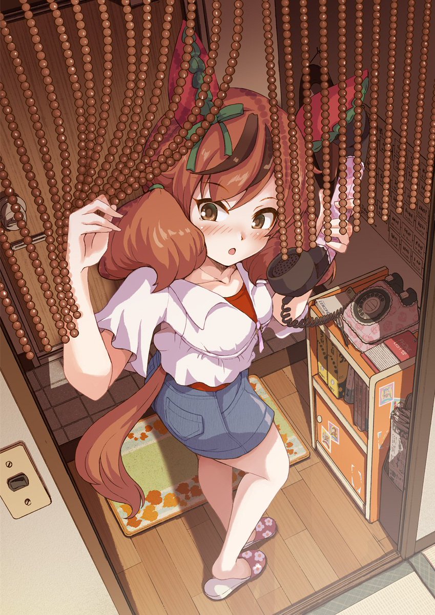 電話中家族が気になるナイスネイチャ