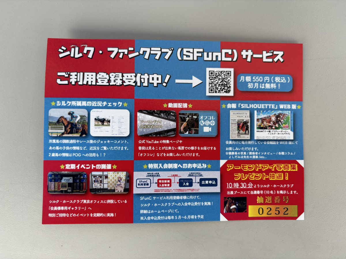 本日はノーザンホースパークにて、ノーザンホースパークマラソン2025が行われます🏃シルク・ホースクラブの出展ブースでは、ブラストワンピースの等身大パネルや一口出資権のパネル展示、SFunCサービスの詳細が記載されているポストカードをお配りしております🙌🏻