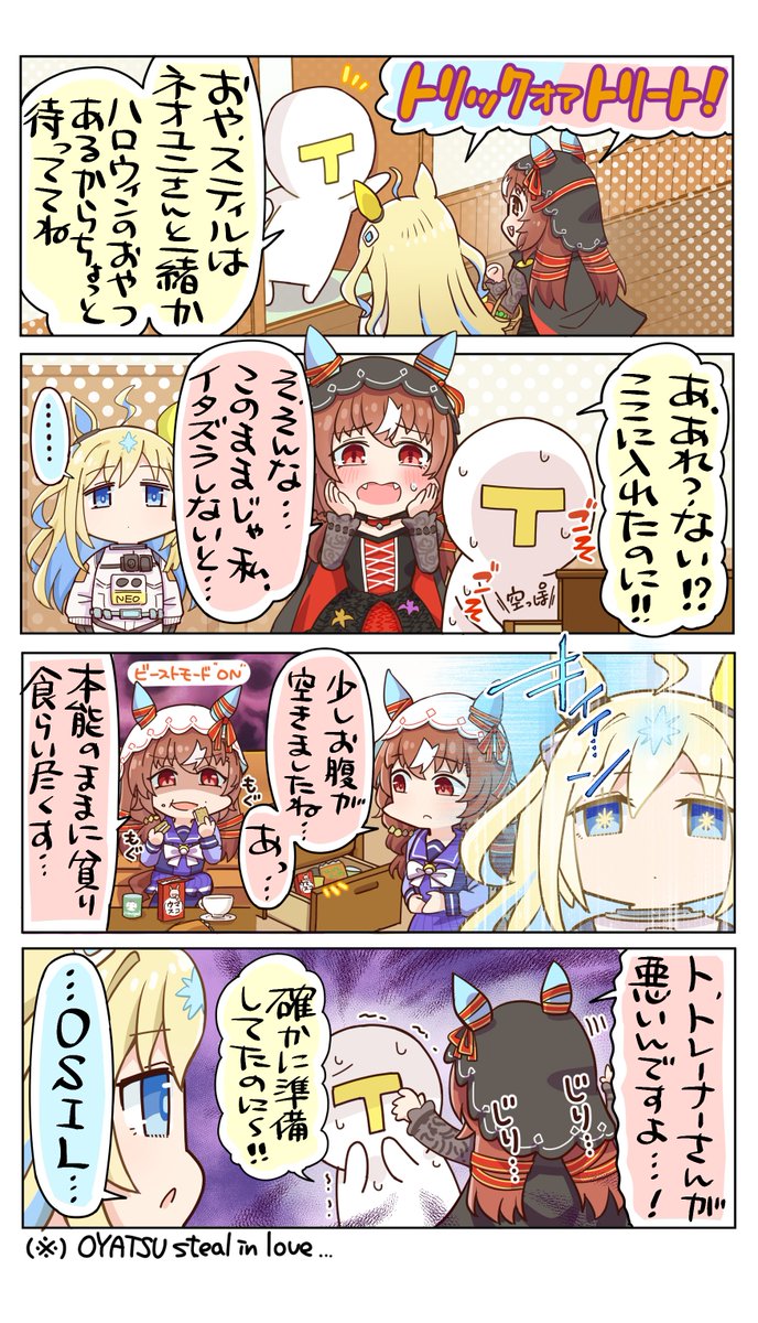 武豊のお菓子むしゃむしゃコンビ ネオユニ(デムーロが武豊が買ってきたアルフォートをつまみ食い)スティル(武豊宛てのお菓子を食べ本人に食べます?って聞いたみゆぴー)