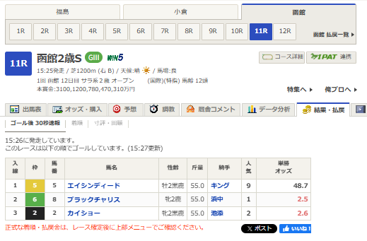 【#函館2歳ステークス 入線速報】