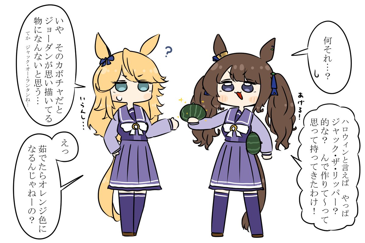 てっきりウララの下半身が緑の方にあると思ってたけど脚の曲がり方的に違うな?