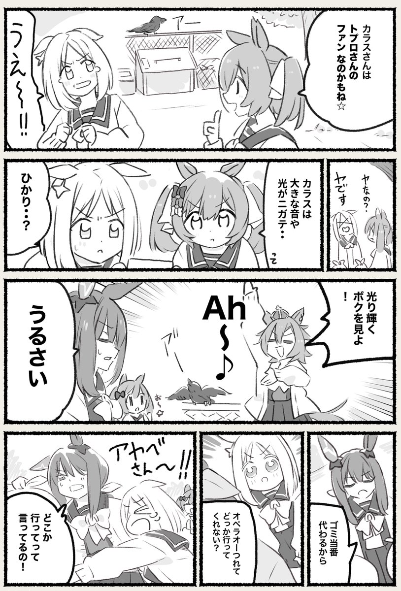 カラス避けにタキオンの薬を飲むトプロの姿がそこにはあった