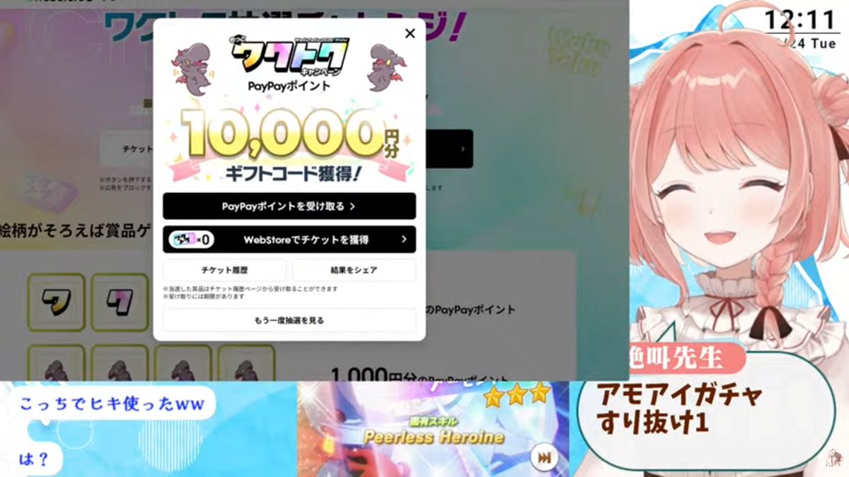 1.5万円課金→チケット3枚ゲット→うち1枚が当たりで1万ポイント貰った