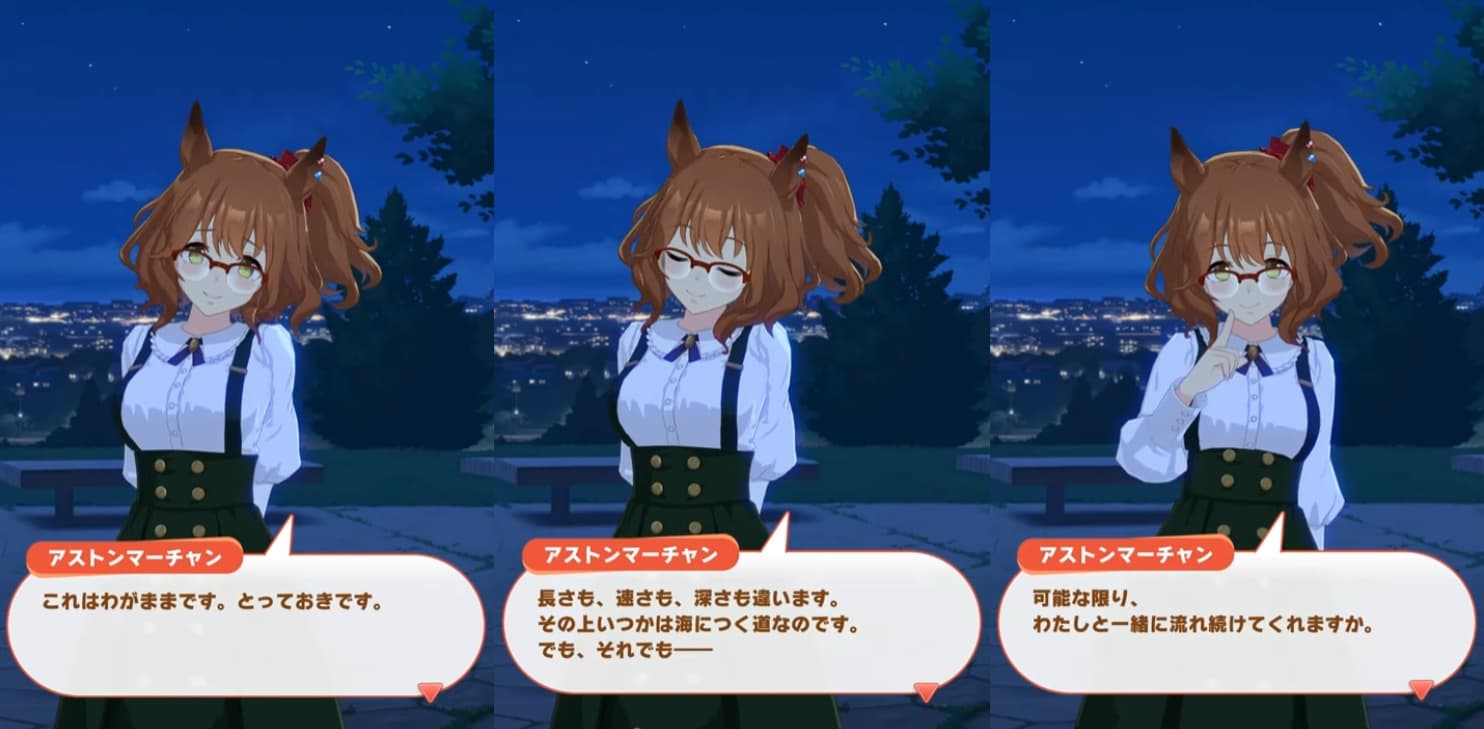温泉見てるかどうかで今後のマーチャンとトレーナーがどうなるかが変わるの面白い